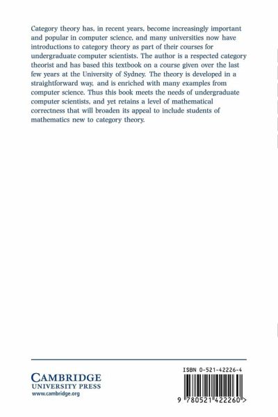 Category theory has, in recent years, become increasingly important and popular in computer science, and many universities now have introductions to category theory as part of their courses for undergraduate computer scientists. The author is a respected category theorist and has based this textbook on a course given over the last few years at the University of Sydney. The theory is developed in a straightforward way, and is enriched with many examples from computer science.