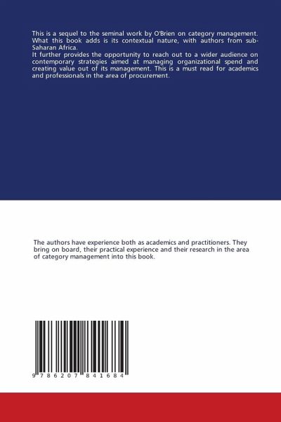 This is a sequel to the seminal work by O'Brien on category management. What this book adds is its contextual nature, with authors from sub-Saharan Africa. It further provides the opportunity to reach out to a wider audience on contemporary strategies aimed at managing organizational spend and creating value out of its management. This is a must read for academics and professionals in the area of procurement.
