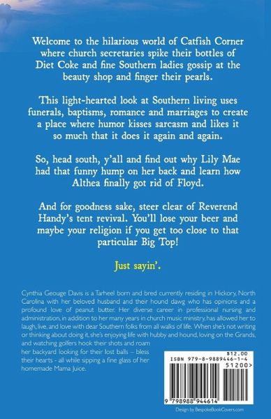 Welcome to the hilarious world of Catfish Corner where church secretaries spike their bottles of Diet Coke and fine Southern ladies gossip at the beauty shop and finger their pearls. This light-hearted look at Southern living uses funerals, baptisms, romance and marriages to create a place where humor kisses sarcasm and likes it so much that it does it again and again. So, head south, y'all and find out why Lily Mae had that funny hump on her back and learn how Althea finally got rid of Floyd. And for goodness sake, steer clear of Reverend Handy's tent revival. You'll lose your beer and maybe your religion if you get too close to that particular Big Top! Just sayin'. --- "Catfish Corner's cast of riotous, flawed characters keep getting into trouble, but you'll love them, warts and all. Their laugh-out-loud antics are relatable, especially if you're a church-going Southerner or have ever lived in a small town where everyone knows, or thinks they know the intimate details of their neighbors. The author lovingly pokes fun at many aspects of church life and also paints a heartwarming picture of a small town where the characters cheer for the good guys and scorn the bad guys. I plan to get copies of this gem of short stories for my friends and sisters, so we can enjoy these funny folks together." - Christine Simolke, Children of Italy