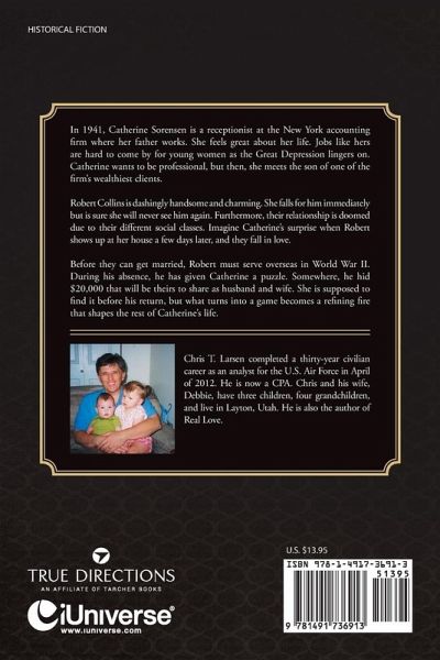 In 1941, Catherine Sorensen is a receptionist at the New York accounting firm where her father works. She feels great about her life. Jobs like hers are hard to come by for young women as the Great Depression lingers on. Catherine wants to be professional, but then, she meets the son of one of the firm's wealthiest clients. Robert Collins is dashingly handsome and charming. She falls for him immediately but is sure she will never see him again. Furthermore, their relationship is doomed due to their different social classes. Imagine Catherine's surprise when Robert shows up at her house a few days later, and they fall in love. Before they can get married, Robert must serve overseas in World War II. During his absence, he has given Catherine a puzzle. Somewhere, he hid $20,000 that will be theirs to share as husband and wife. She is supposed to find it before his return, but what turns into a game becomes a refining fire that shapes the rest of Catherine's life.