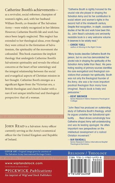 Description: Catherine Booth's achievements--as a revivalist, social reformer, champion of women's rights, and, with her husband William Booth, co-founder of The Salvation Army--were widely recognized in her lifetime. However, Catherine Booth's life and work has since been largely neglected. This neglect has extended to her theological ideas, even though they were critical to the formation of Salvationism, the spirituality of the movement she cofounded. This book examines the implicit theology that undergirds Catherine Booth's Salvationist spirituality and reveals the ethical concerns at the heart of her soteriology and the integral relationship between the social and evangelical aspects of Christian mission in her thought. Catherine Booth emerges as a significant figure from the Victorian era, a British theologian and church leader with a rare if not unique intellectual and theological perspective: that of a woman. Endorsements: ""Catherine Booth is rightly honored for the crucial role she played in shaping the Salvation Army and for her contribution to social reform and women's rights in the second half of the nineteenth century. Despite that recognition, in-depth, academic studies of her life and work have been thin. So, John Read's scholarly and eminently readable book is a very welcome volume. It deserves to be widely read."" --Chick Yuill, author of Moving in the Right Circles ""Many books describe Catherine Booth the person, but no one has demonstrated her pivotal role in shaping the spirituality of the Salvation Army better than Read. His penetrating reading of primary sources identifies the core evangelical and theological convictions that underpin her spirituality. Booth was not only the theological founder of the Army; she was a far more important practical theologian than many have imagined. Read's book is lively and persuasive."" --Kent Brower, Senior Research Fellow, Nazarene Theological College ""John Read has produced an outstanding study of Catherine Booth's theology, which he argues underlies her Salvationist spirituality. . . . Read shows convincingly how Catherine shaped Army self-understanding and was its leading apologist. He offers important new perspectives on the intellectual development of a radical Christian movement."" --Ian Randall, Senior Research Fellow, International Baptist Theological Seminary About the Contributor(s): John Read is a Salvation Army officer currently serving as the Army's ecumenical officer for the United Kingdom and Republic of Ireland.