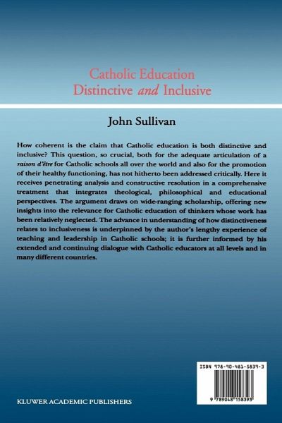 How coherent is the claim that Catholic education is both distinctive and inclusive? This question, so crucial, both for the adequate articulation of a raison d'être for Catholic schools all over the world and also for the promotion of their healthy functioning, has not hitherto been addressed critically. Here it receives penetrating analysis and constructive resolution in a comprehensive treatment that integrates theological, philosophical and educational perspectives. The argument draws on wide-ranging scholarship, offering new insights into the relevance for Catholic education of thinkers whose work has been relatively neglected. The advance in understanding of how distinctiveness relates to inclusiveness is underpinned by the author's lengthy experience of teaching and leadership in Catholic schools; it is further informed by his extended and continuing dialogue with Catholic educators at all levels and in many different countries.