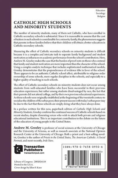 The number of minority students, many of them not Catholic, who have enrolled in Catholic secondary schools is substantial. Since it is reasonable to assume that the cost of tuition in such schools is considerable for a minority family, the phenomenon suggests that parents in these families believe that their children will obtain a better education in Catholic secondary schools. The problem of measuring the effect of Catholic secondary schools on minority students is difficult because it is a complex and intricate task to separate family background and student motivation as influences on academic performance from the school's contribution. Here, Andrew M. Greeley makes the case that the burden of proof rests on those who contend that family and student motivation are more important than the character of the school. Using a complex analytic technique that includes sophisticated mathematical models, Greeley demonstrates that the preponderance of evidence tilts in favor of the school. There appears to be an authentic Catholic school effect, attributable to religious order ownership of some schools, more regular discipline in the schools, and especially to a higher quality of teaching in such schools. The effect of Catholic secondary schools on minority students does not occur among students from well-educated families who have been successful in their previous education experiences, but rather among students disadvantaged by race, the fact that their parents did not attend college, and by their own previous educational experiences. As these schools were originally established at the beginning of the twentieth century to socialize the children of the urban poor, their present success with today's urban poor may be due to the fact that these schools are simply doing what they have always done. In a preface written for this new, paperback edition of Catholic High Schools and Minority Students, Greeley confirms the continued success of Catholic schools based on recent studies, despite dissenting voices who wish to attack both private and religious educational institutions. This is an important contribution to the debate on the future of the education of young people in the United States.