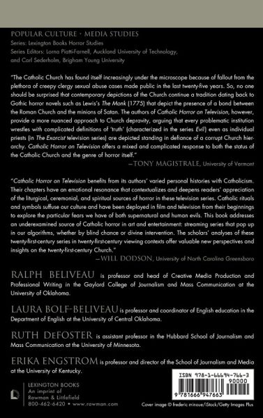 Catholic Horror on Television: Haunting Faith explores the significant intersection of horror media and the Catholic Church. Religious themes enjoy a long history in film and television, with narratives featuring the supernatural, science fiction, and horror making use of Roman Catholicism in particular. The horror genre frequently tells fantastic stories about the mysteries that we seek to understand, helping to come to terms with the destructive and the monstrous. This book analyzes the genre of Catholic horror in the current television and streaming media environment, exploring its treatment of physical mortality, the metaphysics of meaning, and morality. Catholic Horror on Television: Haunting Faith offers a fresh take on how television and streaming horror series critique, expand, and interrogate Catholicism and its place in the modern world. In doing so, this book contributes to conversations in several disciplines including media, cultural, television, and religious studies.