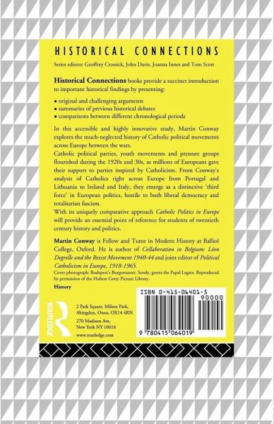 Drawing on the findings of recent research, Conway shows how Catholic political movements formed a vital element of the political life of Europe during the inter-war years. In countries as diverse as France, Germany, Italy, Spain and Austria, as well as further east in Poland, Slovakia, Croatia, and Lithuania, Catholic political parties flourished. Inspired by the values of Catholicism, these movements fought for their own political ideals; hostile to both liberal democracy and totalitarian fascism, Catholics were a 'third force' in European politics. During the Second World War, Catholic political movements continued to pursue their own goals; some chose to fight alongside the German armies, other groups joined Resistance movements to fight against German oppression and for a new social and political order based on Catholic principles.