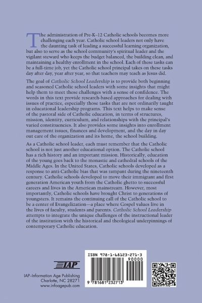 A volume in Research on Religion and Education Series Editors: Larry Burton and Anthony J. Dosen The administration of Pre K - 12 Catholic schools becomes more challenging each year. Catholic school leaders not only have the daunting task of leading a successful learning organization, but also to serve as the school community's spiritual leader and the vigilant steward who keeps the budget balanced, the building clean, and maintaining a healthy enrollment in the school. Each of these tasks can be a full time job, yet the Catholic school principal takes on these tasks day after day, year after year, so that teachers may teach as Jesus did. The goal of this book is to provide both beginning and seasoned Catholic school leaders with some insights that might help them to meet these challenges with a sense of confidence. The words in this text provide research¿based approaches for dealing with issues of practice, especially those tasks that are not ordinarily taught in educational leadership programs. This text helps to make sense of the pastoral side of Catholic education, in terms of structures, mission, identity, curriculum, and relationships with the principal's varied constituencies. It also provides some insights into enrollment management issues, finances and development, and the day in day out care of the organization and its home, the school building. As a Catholic school leader, each must remember that the Catholic school is not just another educational option. The Catholic school has a rich history and an important mission. Historically, education of the young goes back to the monastic and cathedral schools of the Middle Ages. In the United States, Catholic schools developed as a response to anti¿Catholic bias that was rampant during the nineteenth century. Catholic schools developed to move their immigrant and first generation American youth from the Catholic ghetto to successful careers and lives in the American mainstream. However, most importantly, Catholic schools have brought Christ to generations of youngsters. It remains the continuing call of the Catholic school to be a center of Evangelization-a place where Gospel values live in the lives of faculty, students and parents. This text attempts to integrate the unique challenges of the instructional leader of the institution with the historical and theological underpinnings of contemporary Catholic education.