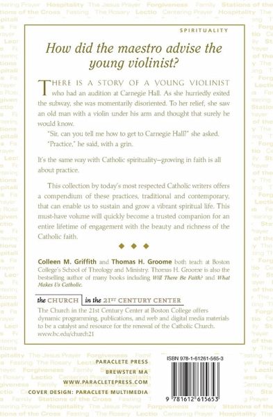 How did the maestro advise the young violinist? There is a story of a young violinist who had an audition at Carnegie Hall. As she hurriedly exited the subway, she was momentarily disoriented. To her relief, she saw an old man with a violin under his arm and thought that surely he would know. "Sir, can you tell me how to get to Carnegie Hall?" she asked. "Practice," he said, with a grin. It's the same way with Catholic spirituality--growing in faith is all about practice. This collection by today's most respected Catholic writers offers a compendium of these practices, traditional and contemporary, that can enable us to sustain and grow a vibrant spiritual life. This must-have volume will quickly become a trusted companion for an entire lifetime of engagement with the beauty and richness of the Catholic faith. Contents: Catholic Spirituality in Practice / Colleen M. Griffith Practices of Prayer The Lord's Prayer / N. T. Wright Praying with the Saints / Elizabeth A. Johnson, CSJ The Jesus Prayer / Joseph Wong, OSB, CAM Intercessory Prayer / Ann Ulanov and Barry Ulanov Centering Prayer / Joseph G. Sandman The Rosary/ Thomas H. Groome Liturgy of the Hours / Elizabeth Collier Praying with Images / Colleen M. Griffith Everyday Prayers / Compiled by Thomas H. Groome Practices of Care Living the Sacramental Principle / Esther de Waal Practicing Hospitality / Ana Maria Pineda, RSM Practicing Forgiveness / Marjorie J. Thompson Family Life as Spiritual Practice / Wendy M. Wright Dia de los Muertos / Alex Garcia-Rivera Practicing Care for the Environment / United States Conference of Catholic Bishops Practices of Spiritual Growth The Ignatian Examen / Dennis Mamm, SJ Spiritual Direction / Kathleen Fischer Retreats / Anne Luther Lectio Divina / Sandra M. Schneiders, IHM Discernment / David Lonsdale Eucharistic Adoration / Brian E. Daley, SJ The Angelus / Thomas H. Groome Stations of the Cross / Thomas H. Groome Fasting / Joan Chittister, OSB Thanksgiving after Communion / Thomas H. Groome Spiritual Practice Goes Digital / Barbara Radtke Conclusion: Keep on Practicing, You'll Get Better at It / Thomas H. Groome