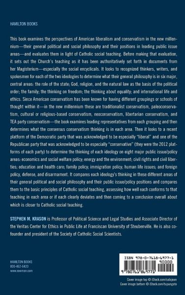This book examines the perspectives of American liberalism and conservatism in the new millennium-their general political and social philosophy and their positions in leading public issue areas-and evaluates them in light of Catholic social teaching. Before making that evaluation, it sets out the Church's teaching as it has been authoritatively set forth in documents from her Magisterium-especially the social encyclicals. It looks to recognized thinkers, writers, and spokesmen for each of the two ideologies to determine what their general philosophy is in six major, central areas: the role of the state; God, religion, and the natural law as the basis of the political order; the family; the thinking on freedom; the thinking about equality; and international life and ethics. Since American conservatism has been known for having different groupings or schools of thought within it-in the new millennium these are traditionalist conservatism, paleoconservatism, cultural or religious-based conservatism, neoconservatism, libertarian conservatism, and TEA party conservatism-the book examines leading representatives from each grouping and then determines what the consensus conservatism thinking is in each area. Then it looks to a recent platform of the Democratic party that was acknowledged to be especially "liberal" and one of the Republican party that was acknowledged to be especially "conservative" (they were the 2012 platforms of each party) to determine the thinking of each ideology on eight major public issue/policy areas: economics and social welfare policy; energy and the environment; civil rights and civil liberties; education and health care; family policy; immigration policy; human life issues; and foreign policy, defense, and disarmament. It compares each ideology's thinking in these different areas of their general political and social philosophy and their public issue/policy positions and compares them to the basic principles of Catholic social teaching, assessing how well each conforms to that teaching in each area or if each clearly deviates and then coming to an conclusion overall about which is closer to Catholic social teaching.