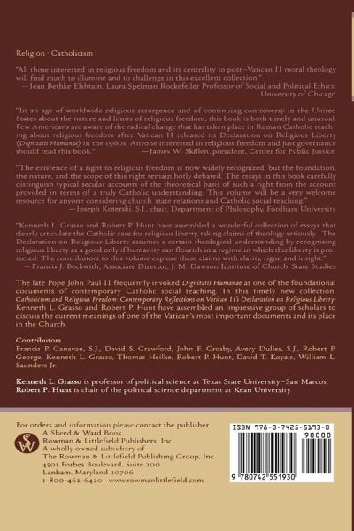 The late Pope John Paul II frequently invoked Dignitatis Humanae as one of the foundational documents of contemporary Church social teaching. In this timely new edited collection, Catholicism and Religious Freedom: Contemporary Reflections on Vatican II's Declaration on Religious Liberty, Kenneth L. Grasso and Robert P. Hunt have assembled an impressive group of scholars to discuss the current meanings of one the Vatican's most important documents and its place in the Church. Dignitatis Humanae understands itself as bringing 'forth new things that are in harmony with the old.' Today, forty years after its publication, the precise nature of these 'new things' and their relationship to 'the old' remain among the most important pieces of unfinished business confronting Catholic social thought. The theological issues brought forth in Dignitatis Humanae go to the heart of the contemporary debate about the nature, foundation, and scope of religious liberty. Here, the contributors to this volume give these considerations the serious and sustained attention they deserve.