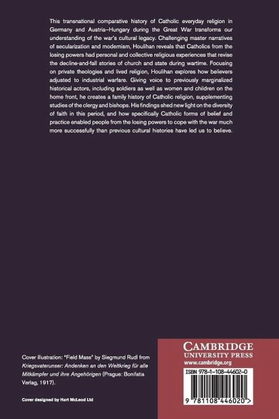 This transnational comparative history of Catholic everyday religion in Germany and Austria-Hungary during the Great War transforms our understanding of the war's cultural legacy. Challenging master narratives of secularization and modernism, Houlihan reveals that Catholics from the losing powers had personal and collective religious experiences that revise the decline-and-fall stories of church and state during wartime. Focusing on private theologies and lived religion, Houlihan explores how believers adjusted to industrial warfare. Giving voice to previously marginalized historical actors, including soldiers as well as women and children on the home front, he creates a family history of Catholic religion, supplementing studies of the clergy and bishops. His findings shed new light on the diversity of faith in this period and how specifically Catholic forms of belief and practice enabled people from the losing powers to cope with the war much more successfully than previous cultural histories have led us to believe.