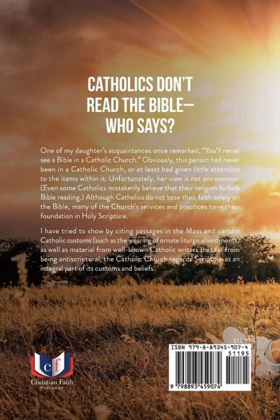 One of my daughter's acquaintances once remarked, "You'll never see a Bible in a Catholic Church." Obviously, this person had never been in a Catholic Church, or at least had given little attention to the items within it. Unfortunately, her view is not uncommon. (Even some Catholics mistakenly believe that their religion forbids Bible reading.) Although Catholics do not base their faith solely on the Bible, many of the Church's services and practices have their foundation in Holy Scripture. I have tried to show by citing passages in the Mass and certain Catholic customs (such as the wearing of ornate liturgical vestments) as well as material from well-known Catholic writers that far from being antiscriptural, the Catholic Church regards Scripture as an integral part of its customs and beliefs.