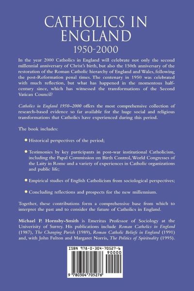 For Catholics in England, the year 2000 marks not only the second millennial anniversary of Christ's birth but also the 150th anniversary of the restoration of the Roman Catholic hierarchy of England and Wales. The centenary in 1950 was celebrated with much reflection, but much has happened in the momentous half-century since. This book offers a comprehensive collection of research-based material on the huge social and religious transformations that Catholics have experienced during this period. Including both historical and sociological perspectives, as well as personal recollections, these contributions form a comprehensive base from which to interpret the past and to consider the future of Catholics in England.