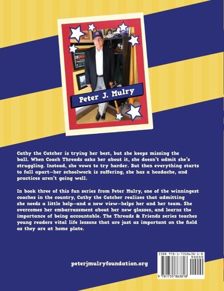 Cathy the Catcher is trying her best, but she keeps missing the ball. When Coach Threads asks her about it, she doesn't admit she's struggling. Instead, she vows to try harder. But then everything starts to fall apart-her schoolwork is suffering, she has a headache, and practices aren't going well. In book three of this fun series from Peter Mulry, one of the winningest coaches in the country, Cathy the Catcher realizes that admitting she needs a little help-and a new view-helps her and her team. She overcomes her embarrassment about her new glasses, and learns the importance of being accountable. The Threads & Friends series teaches young readers vital life lessons that are just as important off the field as they are at home plate.