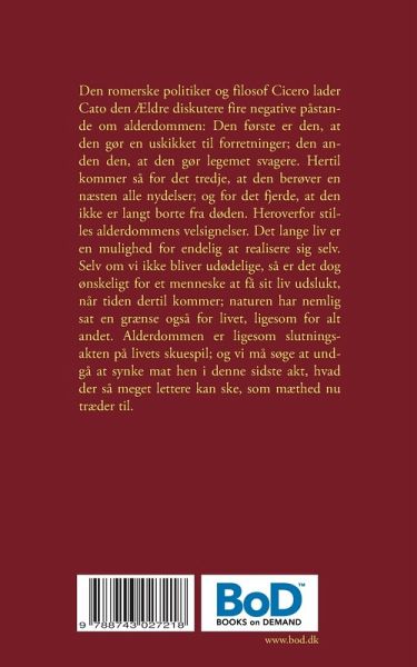 Den romerske politiker og filosof Cicero lader Cato den Ældre diskutere fire negative påstande om alderdommen: Den første er den, at den gør en uskikket til forretninger; den anden den, at den gør legemet svagere. Hertil kommer så for det tredje, at den berøver en næsten alle nydelser; og for det fjerde, at den ikke er langt borte fra døden. Heroverfor stilles alderdommens velsignelser. Det lange liv er en mulighed for endelig at realisere sig selv, og døden ikke bør frygtes! "Enten skal man betragte den med fuldkommen ligegyldighed, nemlig hvis den helt udslukker sjælens bevidsthed; eller man må endogså ønske sig den, nemlig hvis den fører sjælen et eller andet sted hen, hvor den vil vedblive at leve evigt; og noget som helst tredje kan visselig ikke findes."