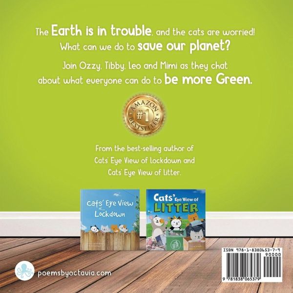 The cats are worried about the state of our planet! Join Ozzy, Tibby, Leo and Mimi as they chat about what everyone can do to be more Green. With topics including recycling, litter-picking, energy conservation, up-cycling and more, this book can start many meaningful discussions. Whether read by a parent, care-giver or teacher, there are conversation-starting questions throughout, interspersed with a wonderful rhyming story. Adorable illustrations of the friendly cats, combine with real-life photography to create an eye-catching and engaging book. Sustainability is a subject that will become more important as children grow up, so introducing the concept in a light-hearted and fun way is sure to help form well-rounded, thoughtful individuals. From the best-selling author of Cats' Eye View of Lockdown and Cats' Eye View of Litter.