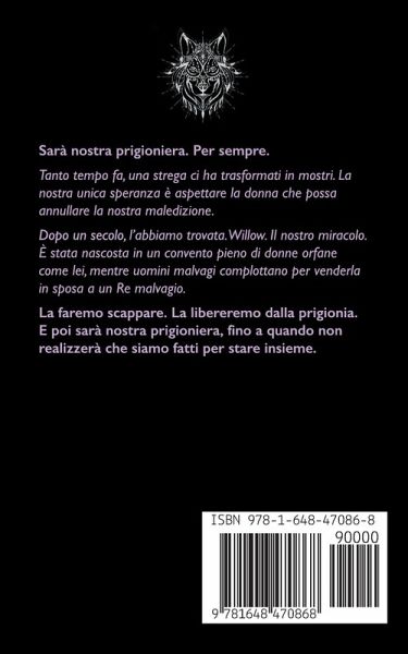 Sarà nostra prigioniera. Per sempre. Tanto tempo fa, una strega ci ha trasformati in mostri. La nostra unica speranza è aspettare la donna che possa annullare la nostra maledizione. Dopo un secolo, l'abbiamo trovata. Willow. Il nostro miracolo. È stata nascosta in un convento pieno di donne orfane come lei, mentre uomini malvagi complottano per venderla in sposa a un Re malvagio. La faremo scappare. La libereremo dalla prigionia. E poi sarà nostra prigioniera, fino a quando non realizzerà che siamo fatti per stare insieme. Nota dell'Autrice: questo è un romanzo completamente incentrato su un ménage MFM. Non ci sono scene M/M, soltanto due guerrieri sexy e dominanti che rivendicano la stessa donna insieme...
