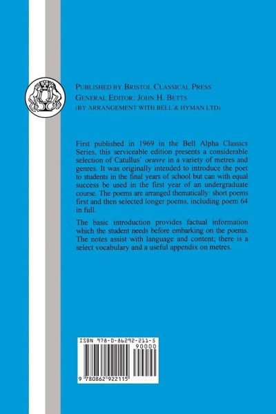 There is no Latin author more suitable for Sixth Form study than Catullus. The variety of his subject-matter, the range of his emotions, the originality of his ideas, and the superb quality of his verse combine to make the reading of his poems a delight to both teacher and student. This standard edition presents a considerable collection of Catullus' oeuvre in a variety of metres and genres. It was originally intended to introduce the poet to students in the final years of school, but can equally successfully be used in the first year undergraduate course. The poems are arranged thematically: short poems first and then selected longer poems, including poem 64 in full. The basic introduction provides factual information which the student will need before embarking on the poems. Notes will assist with language and content, alongside a select vocabulary and a useful appendix on metres.