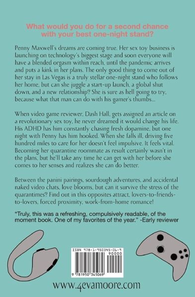 What would you do for a second chance at your best one-night stand? Penny Maxwell's dreams are coming true. Her sex toy business is launching on technology's biggest stage and soon everyone will have a blended orgasm within reach, until the pandemic arrives and puts a kink in her plans. The only good thing to come out of her stay in Las Vegas is a truly stellar one-night stand who follows her home, but can she juggle a start-up launch, a global shut down, and a new relationship? She is sure as hell going to try, because what that man can do with his gamer's thumbs... When video game reviewer, Dash Hall, gets assigned an article on a revolutionary sex toy, he never dreamed it would change his life. His ADHD has him constantly chasing fresh dopamine, but one night with Penny has him hooked. When she falls ill, driving five hundred miles to care for her doesn't feel impulsive. It feels vital. Becoming her quarantine roommate as result certainly wasn't in the plans, but he'll take any time he can get with her before she comes to her senses and realizes she can do better. Between the panini pairings, sourdough adventures, and accidental naked video chats, love blooms, but can it survive the stress of the quarantimes? Find out in this opposites attract, lovers-to-friends-to-lovers, forced proximity, work-from-home romance! "Truly, this was a refreshing, compulsively readable, of the moment book. One of my favorites of the year." -Early reviewer