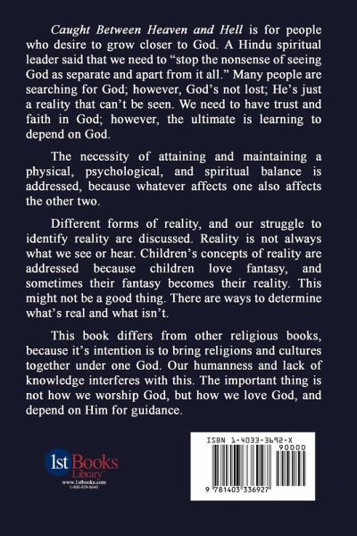 Who, what, and where is God? How intricately is God connected with everyone and everything? How can I attain a physical, emotional, and spiritual balance? Why is reality so disguised? "Caught Between Heaven and Hell" attempts to help people with these issues.