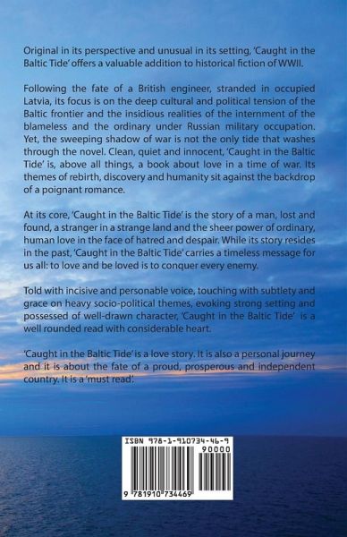 Original in its perspective and unusual in its setting, 'Caught in the Baltic Tide' offers a valuable addition to historical fiction of WWII. Following the fate of a British engineer, stranded in occupied Latvia, its focus is on the deep cultural and political tension of the Baltic frontier and the insidious realities of the internment of the blameless and the ordinary under Russian military occupation. Yet, the sweeping shadow of war is not the only tide that washes through the novel. Clean, quiet and innocent, 'Caught in the Baltic Tide' is, above all things, a book about love in a time of war. Its themes of rebirth, discovery and humanity sit against the backdrop of a poignant romance. At its core, 'Caught in the Baltic Tide' is the story of a man, lost and found, a stranger in a strange land and the sheer power of ordinary, human love in the face of hatred and despair. While its story resides in the past, 'Caught in the Baltic Tide' carries a timeless message for us all: to love and be loved is to conquer every enemy. Told with an incisive and personable voice, touching with subtlety and grace on heavy socio-political themes, evoking strong setting and possessed of well-drawn character, 'Caught in the Baltic Tide' is a well rounded read with considerable heart. 'Caught in the Baltic Tide' is a love story. It is also a personal journey and it is about the fate of a proud, prosperous and independent country. It is a 'must read'.