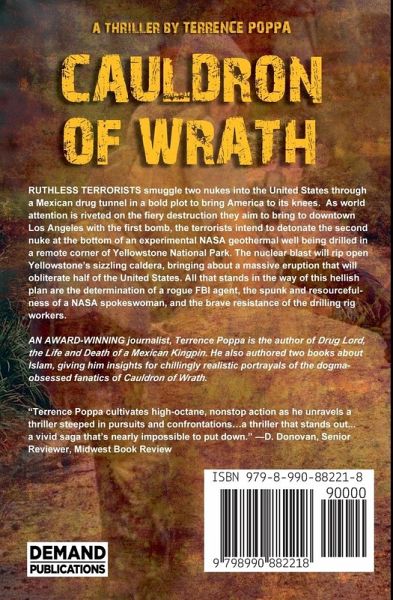 Terrorists smuggle two nuclear bombs into the United States through a Mexican drug tunnel in a bold plot to destroy the United States. While world attention is riveted on the fiery destruction they aim to bring to downtown Los Angeles with the first nuke, the terrorists intend to detonate the second bomb at the bottom of an experimental NASA geothermal well located in a remote corner of Yellowstone National Park. The nuclear blast will rip open Yellowstone's sizzling caldera, triggering a massive eruption that will obliterate half of the United States. FBI agent Malcolm Hendricks, special agent in charge of a counterterrorism task force in Los Angeles, thwarts the LA bomb only seconds before it is detonated near USC. He has learned the identity of the terror leader, Abu Hadi al-Maliki, through actions he took in defiance of his superiors in Washington. In recognition of his bold work, the president puts him in charge of finding Maliki and the second nuke, but the only clue Hendricks has to go on is a trail of bodies that ends in Idaho near Yellowstone. As Hendricks unleashes every resource available to find Maliki and the second bomb, the terror leader and his zealots attack the geothermal site, killing most of the drilling rig workers and many of the journalists who arrive by bus to report on the project. Trained for the mission to operate a drilling rig, Maliki and his commandos begin lowering the bomb two miles to the bottom of the NASA well. All that stands in the way of the fanatical plot to destroy America are Hendricks' relentless efforts to find him, the resourcefulness of the NASA spokeswoman who brought the doomed journalists to the site, and the brave resistance of the few rig workers who survive Maliki's brutal assault.