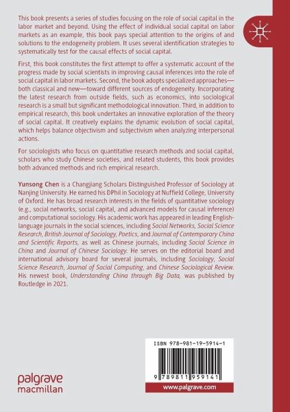 This book presents a series of studies focusing on the role of social capital in the labor market and beyond. Using the effect of individual social capital on labor markets as an example, this book pays special attention to the origins of and solutions to the endogeneity problem. It uses several identification strategies to systematically test for the causal effects of social capital.
