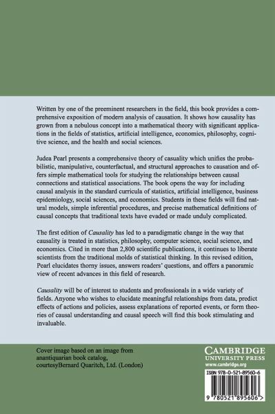 Written by one of the preeminent researchers in the field, this book provides a comprehensive exposition of modern analysis of causation. It shows how causality has grown from a nebulous concept into a mathematical theory with significant applications in the fields of statistics, artificial intelligence, economics, philosophy, cognitive science, and the health and social sciences. Judea Pearl presents and unifies the probabilistic, manipulative, counterfactual, and structural approaches to causation and devises simple mathematical tools for studying the relationships between causal connections and statistical associations. Cited in more than 2,100 scientific publications, it continues to liberate scientists from the traditional molds of statistical thinking. In this revised edition, Judea Pearl elucidates thorny issues, answers readers' questions, and offers a panoramic view of recent advances in this field of research. Causality will be of interest to students and professionals in a wide variety of fields. Dr Judea Pearl has received the 2011 Rumelhart Prize for his leading research in Artificial Intelligence (AI) and systems from The Cognitive Science Society.