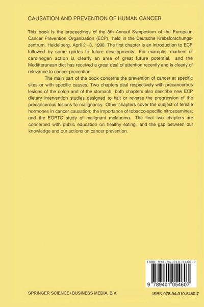 The European Organization for Cooperation in Cancer Prevention Studies (ECP) was established in 1981 to promote collaboration between scientists working in the various European countries on cancer causation and prevention. In order to achieve this aim, various working group- to deal with specific cancers or aspects of cancer aetiology, and to explore the opportunities for advances on a cooperative European basis - were established. It was also decided to hold annual symposia to draw general attention to fields in which there seemed to be many opportunities for progress in matters of prevention. These symposia have been devoted to themes of high priority to cancer prevention: "Tobacco and Cancer" (1983), "Hormones and Sexual Factors in Human Cancer Aetiology" (1984), "Diet and Human Carcinogenesis" (1985), "Concepts and Theories in Carcinogenesis" (1986)," Preventive Strategies for Cancer related to Immune Deficiencies" (1987), "Gastric Carcinogenesis" (1988), and "Breast, Ovarianand Endometrial Cancer: Aetiological and Epidemiological Relationships" (1989). This volume contains the proceedings of the 1990 ECP symposium held in Heidelberg, FRG, at the Deutsches Krebsforschungszentrum (DKFZ), on April 2-3 on "Causation and Prevention of Human Cancer". We are indebted to the speakers for their contribution during the symposium and for their prompt submission of manuscripts. We are grateful to the sponsors, SmithKline Diagnostics and Rohm Pharma. Our special thanks go to Dr M.C. stanei-Gueur for preparing and typing the camera forms of all manuscripts.
