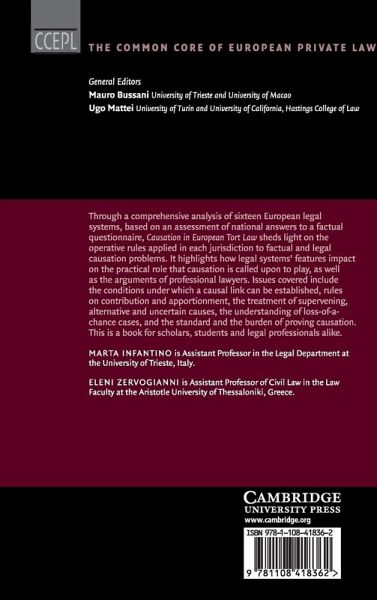 Part I. Causation in Context: 1. The place and space of causation Marta Infantino and Eleni Zervogianni; 2. Causation in the law: philosophy, doctrine and practice Ingeborg Puppe and Richard W. Wright; 3. Actual causation in the Second and Third Restatements: or, the expulsion of the substantial factor test Anthony J. Sebok; 4. The European ways to causation Marta Infantino and Eleni Zervogianni; Part II. The Comparative Evidence. Case Responses and Editors' Comparative Comments: 5. Preliminary remarks on methodology Marta Infantino and Eleni Zervogianni; 6. The case studies; Part III. The Comparative Assessment: 7. Summary and survey of the results Marta Infantino and Eleni Zervogianni.