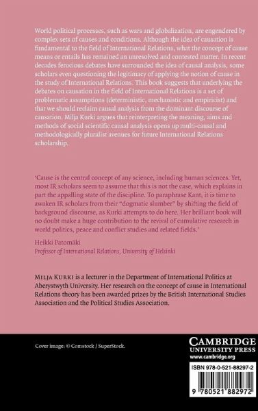 World political processes, such as wars and globalisation, are engendered by complex sets of causes and conditions. Although the idea of causation is fundamental to the field of International Relations, what the concept of cause means or entails has remained an unresolved and contested matter. In recent decades ferocious debates have surrounded the idea of causal analysis, some scholars even questioning the legitimacy of applying the notion of cause in the study of International Relations. This book suggests that underlying the debates on causation in the field of International Relations is a set of problematic assumptions (deterministic, mechanistic and empiricist) and that we should reclaim causal analysis from the dominant discourse of causation. Milja Kurki argues that reinterpreting the meaning, aims and methods of social scientific causal analysis opens up multi-causal and methodologically pluralist avenues for future International Relations scholarship.