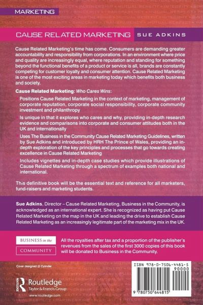 "Sue Adkins... has defined Cause Related Marketing in the UK. She has built the business case for Cause Related Marketing for the benefit of both business and the wider community and has in fact been the leading campaigner in establishing Cause Related Marketing as a legitimate part of the marketing mix. I recommend this book to you and urge you to consider how the potential of Cause Related Marketing can be released for the benefit of your organization and the wider community"