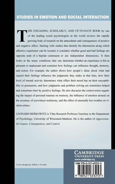 This engaging, scholarly book by one of the leading social psychologists in the world reviews the rapidly growing body of research on the antecedents and consequences of positive and negative affect. Starting with studies that identify the dimensions along which affective experience can be located, it considers whether good and bad feelings are opposite ends of a bipolar continuum or are independent dimensions. It then looks at the many conditions that can determine whether an experience is felt as pleasant or unpleasant and examines how feelings can influence thought, memory, and action. For example, the author shows how the associative perspective accounts for mood effects on memory and why creativity is often enhanced by positive feelings. He also discusses how emotion arousal can affect the accuracy of eyewitness testimony and how good is the evidence that unusually hot weather might promote violent crimes.