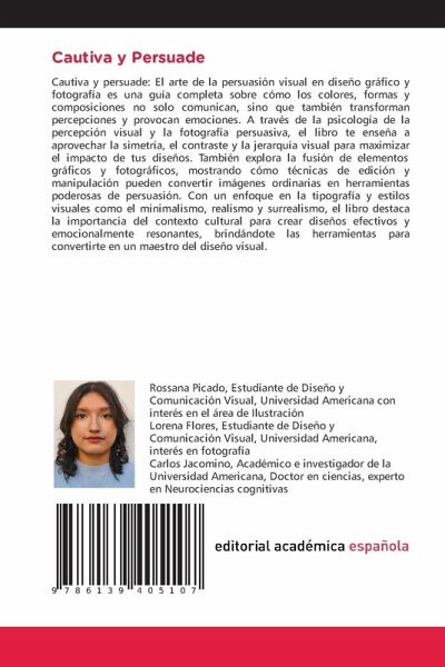 Cautiva y persuade: El arte de la persuasión visual en diseño gráfico y fotografía es una guía completa sobre cómo los colores, formas y composiciones no solo comunican, sino que también transforman percepciones y provocan emociones. A través de la psicología de la percepción visual y la fotografía persuasiva, el libro te enseña a aprovechar la simetría, el contraste y la jerarquía visual para maximizar el impacto de tus diseños. También explora la fusión de elementos gráficos y fotográficos, mostrando cómo técnicas de edición y manipulación pueden convertir imágenes ordinarias en herramientas poderosas de persuasión. Con un enfoque en la tipografía y estilos visuales como el minimalismo, realismo y surrealismo, el libro destaca la importancia del contexto cultural para crear diseños efectivos y emocionalmente resonantes, brindándote las herramientas para convertirte en un maestro del diseño visual.