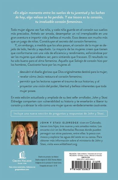 El mensaje de Cautivante es este: tu corazón importa más que cualquier cosa en toda la creación. Los deseos que tenías de niña y los anhelos que todavía sientes como mujer te comunican la vida para la que Dios te creó. Él ofrece venir ahora como el Héroe de tu historia, a rescatar tu corazón y liberarte para que vivas como una mujer completamente viva y femenina, una mujer realmente cautivante.
