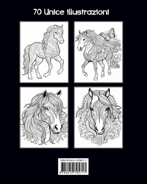 70 fantastici disegni di cavalli da colorare di Lea Schöning Il libro da colorare Horses Mandala offre un modo unico per esprimere la propria creatività e allo stesso tempo favorire il rilassamento. Le pagine del libro contengono illustrazioni dettagliate di cavalli in varie pose che vi aspettano per essere colorate. Ottimo per tutti i livelli di abilità Che siate principianti o artisti avanzati, questo libro da colorare è ideale per tutti coloro che amano i cavalli. Ogni immagine è stata accuratamente studiata per permettervi di utilizzare i colori e le tecniche che desiderate e creare la vostra interpretazione personale. Le immagini sono realizzate su un solo lato Ogni immagine è posizionata su una pagina a sé stante, in modo da non doversi preoccupare che si veda in trasparenza. Un grande regalo I nostri libri sono un ottimo regalo di compleanno per un amico, per la festa della mamma, per gli uomini, per Natale o per qualsiasi altro anniversario. Ordinate oggi stesso e lasciatevi ispirare da questo libro da colorare sui cavalli, unico nel suo genere!