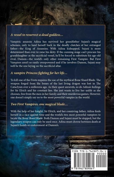A vessel to resurrect a dead goddess... Vampiric assassin Adina has survived her grandfather Sujani's magical schemes, only to land herself back in the deadly clutches of her estranged father-the King of Assassins. With Adina kidnapped, Sujani is more determined than ever to raise his deity. If the cunning mage can't procure his granddaughter as the sacrificial vessel, he'll be forced to substitute his age-old rival, Damon-the world's only other remaining First Vampire. But First Vampires aren't so easily overpowered and if he involves Damon, Sujani may well be the one laying on the sacrificial altar. A vampire Princess fighting for her life... To kill one of the Firsts requires the use of the mythical Bone Shard Blade. The weapon forged from the bones of the last living dragon was lost in The Cataclysm over a millennia ago. As their quest unravels, so do Adina's feelings for Sir Elrich and his constant lies. She just wants to live her unlife as she chooses, free from the men in her family and their murderous games. However, one doesn't simply say no to the most powerful vampire in the world. Two First Vampires, one magical blade... With the help of her knight, Sir Elrich, and her conniving father, Adina finds herself in a race against time and the world's two most powerful vampires to locate the Bone Shard Blade. Both Damon and Sujani must be stopped, but the legendary weapon can only be used once. Adina must choose between death at Sujani's hands or enslavement at Damon's. Cave of Blood and Bones is a thrilling paranormal fantasy exploring found family, morally gray characters and redemption.