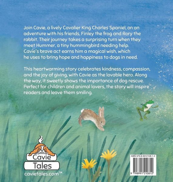 Join Cavie, a Cavalier King Charles Spaniel rescue dog, on an adventure with his friends, Finley the frog, and Rory, the rabbit. Their journey takes a surprising turn when they meet Hummer, a tiny hummingbird needing help. When Cavie's brave act earns him a magical wish, he has to decide what to wish for. With surprising moments and a big decision to make, Cavie uses his wish to bring hope and happiness to dogs in need. Cavie's Magical Wish highlights the values of kindness, compassion, and dog rescue and adoption. These messages are positive for young readers, their families, and dog lovers everywhere! The heartwarming tale is sure to inspire and delight! Author Julie Huetsch is thrilled to introduce her new children's book, Cavie's Magical Wish, the first of her Cavie Tales¿ series. Drawing from her personal experiences with dog rescue and her love for Cavalier King Charles Spaniels, Julie's heartfelt connection to these themes shines through in her writing with sincerity and warmth. Julie is dedicated to making a difference. A portion of her book sales support The Cavalier Rescue, which helps dogs needing rescue and rehabilitation. Siski Kalla's illustrations are enchanting with their vibrant colors and striking details. Each scene is beautifully created, capturing the charm and personality of the animal characters. Her artwork adds an extra layer of magic and warmth to the entire reading experience.