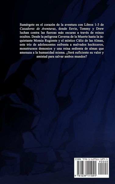 ¡Amado por más de 10,000 lectores de fantasía preadolescentes y adultos! Sumérgete en el corazón de la aventura con Libros 1-3 de Cazadores de Aventuras, donde Eevie, Tommy y Drew luchan contra las fuerzas más oscuras a través de reinos ocultos. Desde la peligrosa Caverna de la Muerte hasta la inquietante Momia Rugiente y el místico Cáliz de las Almas, este trío de adolescentes enfrenta a malvados hechiceros, monstruosos demonios y una reina sedienta de almas que amenaza a la humanidad misma. ¿Será suficiente su valor y amistad para salvar ambos mundos? Embárcate en este viaje épico; agarra tus primeros tres libros ahora y únete a los Cazadores de Aventuras en su lucha contra la oscuridad.