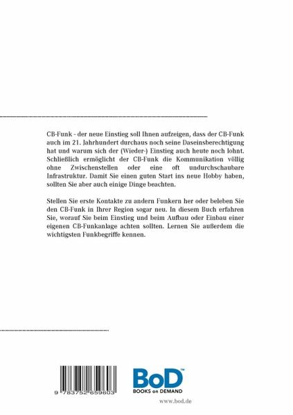 CB-Funk, ein alter Hut? Auf keinen Fall!Der CB-Funk ist auch im 21. Jahrhundert präsent, der (Wieder-) Einstieg lohnt sich auch heute noch.Warum? Was sind die wichtigsten Vorteile für Sie? Hier sind ein paar davon:-CB-Funk macht die Kommunikation völlig ohne Zwischenstellen oder eine oft undurchschaubare Infrastruktur möglich.-Das gilt natürlich auch für andere Funkanwendungen wie Freenet oder PMR446, die hier ebenfalls kurz vorgestellt werden.-Der Einstieg ist kostengünstig und so einfach, dass er grundsätzlich für jeden geeignet ist.-Sie benötigen für den CB-Funk keine Funklizenz.-Sie können viele neue Leute (oder vielleicht auch alte Bekannte) auf dem Funk treffen.-Es können unbegrenzt viele Funker teilnehmen und sich austauschen.-Der Umgangston ist (normalerweise) locker und nett.-Außer den Stromkosten entstehen keine weiteren Kosten, etwa durch Gebühren oder ähnliches.Und einige weitere VorteileDamit Sie einen guten Start ins neue Hobby haben, sollten Sie aber auch einige Dinge beachten. Aber der Einstieg ist aber leichter, als Sie vielleicht denken. Trauen Sie sich einfach und mischen Sie mit. Knüpfen Sie viele neue Bekanntschaften und haben Sie jede Menge Spaß "auf dem Band". Das Buch soll Ihnen dabei helfen. Lesen Sie, wie Sie ein altes oder neues Funkgerät in Betrieb nehmen und worauf Sie dabei achten sollten.