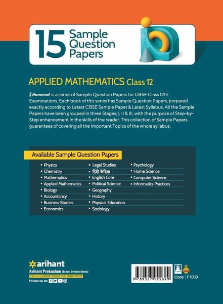 It is said that practice is the only way to ace your preparation. And the best way is to solve the sample question papers to understand the weightage of marks, type of questions asked and develop a familiarity with the examination patterns. iSucceed series presents "CBSE BOARD EXAMS 2023 iSucceed 15 Sample Question Papers- APPLIED MATHEMATICS XII" which has been revised as the latest CBSE Sample Paper issued on 16-Sept-2022. The book begins with a special section of Fast Track Revision to have a quick revision of the whole syllabus before attempting the Sample Question Papers. 15 Sample Question Papers provided in this book are leveled into three stages with the purpose of step-by-step enhancement in the performance of students. Stage 1: It has 5 Sample Question Papers in which each question Paper is followed by its complete solution. Stage 2: It has 5 Sample Question Papers in which each question Paper is followed by its solution but in the form of a hint. Stage 3: It has 5 unsolved question papers which are only provided for sole practice. To see your level of preparation, the latest CBSE Sample Paper is given with well- detailed solutions to give an idea about the marking scheme and the question pattern. For last moment revision, this book facilitates "one day before the exam" to enhance performance and score best. 1. A complete practice tool to score the best in the Applied Mathematics board exam 2023 2. Includes Fast Track Revision section to brush the concepts 3. Divides 15 samples papers into 3 Stages to enhance the preparation 4. Fully solved latest CBSE sample paper to understand the exam pattern 5. At the end "One Day Before exam" is included to revise all concepts 6. Online guidance is available for unsolved Sample Question Papers TABLE OF CONTENT: Fast Track Revision, Stage: 1 (Question-Solution) Sample Question Paper 1-5, Stage: 2 (Questions- Solutions) Sample Question Paper 6-10, Stage: 3 Unsolved Sample Question Paper 11-15, Latest CBSE Sample Paper, One Day Before Exam