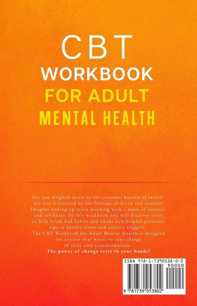 Does the constant burden of stress weigh you down? Does hope seem out of reach in a desperately cold world? Are you frustrated by the feelings of dread and anxiety and their detrimental effects on your daily life? Are you struggling to get back to the activities that once defined you? Imagine waking up every morning with a sense of control and solidness. Imagine sipping your morning coffee without the alarms going off in your head. Imagine walking into any situation with the serenity to accept what you cannot control and the courage to work on what you can change. The CBT Workbook for Adult Mental Health explores the interconnectedness of thoughts, emotions, and behavior, and the power of cognitive behavioral therapy (CBT) to effect meaningful change and propel you towards your goals. In this workbook, you will discover:The potential of negative thoughts to accelerate negative emotions and behavior, and vice versa The argument for CBT in managing numerous disorders, focusing on anxiety, depression, and stress The common cognitive distortions that prompt automatic negative thoughts The steps in cognitive restructuring and tools that help examine and reshape thoughts Tools to help break bad habits and adopt new, helpful patterns The role of mindfulness in maintaining progress Tips to handle stress and anxiety triggers. .. and so much more! This workbook is designed for anyone wanting to take charge of their transformation. It is for the person that believes they are worth the time and effort to become whole and are willing to take bold steps towards awareness. It is for you, because you are worth the time and effort to evolve. The exercises are simple and direct, yet they bring the silent workings of the mind to the fore, allowing proactive assessment and progressive improvement. Having felt the weight of anxiety and depression for years, the author found internal momentum for self-work and healing when practicing daily CBT techniques to find peace and balance. The power of change rests in your hands too. Are you willing to take the mad leap into your next great adventure?