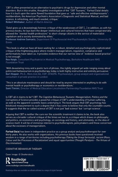 "CBT is often presented as an alternative to psychiatric drugs for depression and other mental disorders. But in this erudite, thoughtful investigation of the "CBT Tsunami," Farhad Dalal details how it is built upon the same flawed foundation that gave us "safe and effective antidepressants": neoliberalism, the American Psychiatric Association's Diagnostic and Statistical Manual, and bad science. A refreshing, and much needed, critique." --Robert Whittaker, Author of Mad In America