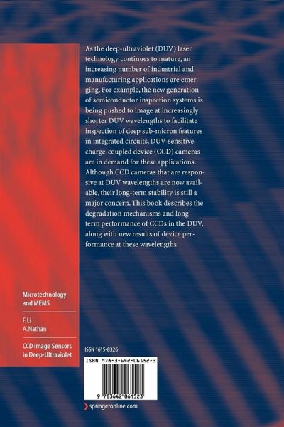 As the deep-ultraviolet (DUV) laser technology continues to mature, an increasing number of industrial and manufacturing applications are emerging. For example, the new generation of semiconductor inspection systems is being pushed to image at increasingly shorter DUV wavelengths to facilitate inspection of deep sub-micron features in integrated circuits. DUV-sensitive charge-coupled device (CCD) cameras are in demand for these applications. Although CCD cameras that are responsive at DUV wavelengths are now available, their long-term stability is still a major concern. This book describes the degradation mechanisms and long-term performance of CCDs in the DUV, along with new results of device performance at these wavelengths.