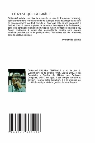 Olivier-Jeff Kalala nous livre la vision du monde du Professeur Mukendji, spécialement dans le secteur de la vie publique, mais davantage dans celui de l'enseignement, car tout part de là. Pour que celui-ci soit compétitif, il faudrait d'abord penser à placer le formateur, l'enseignant, le Professeur ; dans des conditions humainement viables. Sinon, l'évidence est que la RD Congo continuera à former des incompétents parfaits sans aucune influence positive sur la vie publique dont l'illustration est très manifeste dans le secteur politique. Pr Mathias Buabua