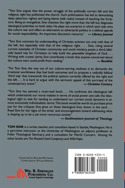 This is a print on demand book and is therefore non- returnable. Three abortion doctors and eight aides are gunned down and six are killed. More than 150 abortion clinics are firebombed. A church is vandalized by gay prostitutes. A pro-choice activist calls for "massive militant action" against anti-abortionists. In Cease Fire Tom Sine takes up the concerns of millions of Christians — evangelical and mainline Protestants, Catholics, and Orthodox — who feel uneasy with some of the excesses of the politically correct left but who recoil at the stance taken by Pat Robertson, Jerry Falwell, and Ralph Reed and the Christian Coalition that the extreme religious right, with its quest for political power, is the only place to turn. Sine looks at the tactics and agendas of extremists on both sides and asks what society would look like if their particular visions were to win out. He then argues that the positions of the religious right and of the left are not the only available choices. The Bible offers a third choice, God's "better way" — a biblical center represented by neither right nor left in the current debate. Cease Fire is written to enable readers to understand why America's culture wars are so adversarial, polarizing, and increasingly violent; to anticipate which side is likely to gain the upper hand in these contentious conflicts and how it is likely to shape our common future; and to offer a third way — a radical biblical alternative to the political ideologies of the religious right and the left — for those searching for a new place to stand in a new millennium.