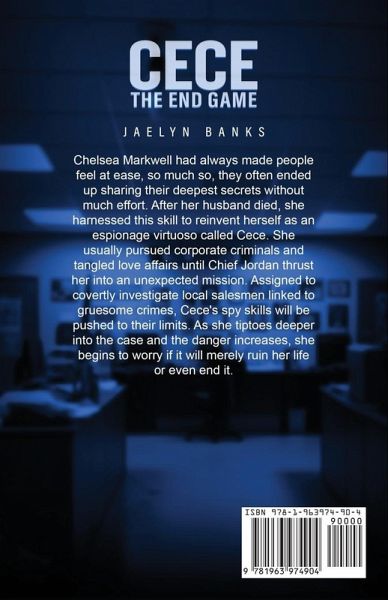 Chelsea Markwell had always made people feel at ease, so much so, they often ended up sharing their deepest secrets without much effort. After her husband died, she harnessed this skill to reinvent herself as an espionage virtuoso called Cece. She usually pursued corporate criminals and tangled love affairs until Chief Jordan thrust her into an unexpected mission. Assigned to covertly investigate local salesmen linked to gruesome crimes, Cece's spy skills will be pushed to their limits. As she tiptoes deeper into the case and the danger increases, she begins to worry if it will merely ruin her life or even end it.