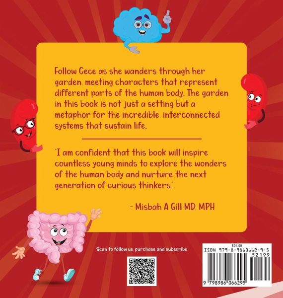 Follow Cece as she wanders through her garden, meeting characters that represent different parts of the human body. The garden in this book is not just a setting but a metaphor for the incredible, interconnected systems that sustain life. Come and meet, Bomi the Brain, Kameko and Kiaa the Kidneys and Colin the Colin. I am confident that this book will inspire countless young minds to explore the wonders of the human body and nurture the next generation of curious thinkers. "Misbah A Gill MD, MPH"