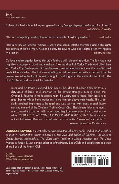 The blinding sun was shoulder high when Cedar City lay shimmering in the heat rising from Overland Trail. In the distance, citizens trailing little dust clouds shuffled in the street. In the lead, Jason and the Deacon stopped their mounts shoulder to shoulder. Only the town's dirty faced children paid attention to the newest strangers coming down the Overland.The weary riders raised their faces to a great banner which hung motionless in the air above their heads. The wide cloth stretched limply across the road and black letters, thick as a man's arm covered the banner with the words reaching from one side of the street to the other: CEDAR CITY: WELCOME ASSASSINS AND ROAD SCUM The stony face of the black vested Deacon cracked into a narrow smile. "Seems we're expected."