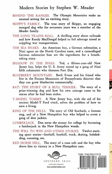 Those who have enjoyed Mr. Meader's Red Horse Hill will remember Cedar, the great pacing colt, and the stirring snowpath races in which he took part. Here, years later, the grandchildren of old Cedar carry Bud Martin's colors to victory at Riverdale Fair. Several other characters in the book will be familiar---Uncle John Mason, Billy Randall, Yance and Harko Dan. The new hero is Shad Davis, a lanky youngster from Squantic, born with courage, good hands and a love of horses. This swift-paced story of the harness track is published at an appropriate time---the 100th anniversary of the birth of Hambletonian 10, founding sire of the standardbred line---when harness racing has reached a peak of popularity not equaled since pre-automobile days. There is more in this book than racing. Stephen Meader spent a large part of his boyhood in the neighborhood of Rochester, New Hampshire, long famous for its Fair. During Fair Week each September he was always as close to the trotting stables and the track as he could get. It is not surprising then that the ever-present background of the Fair is authentic and sharply drawn, a memorable picture of something that is typically American.