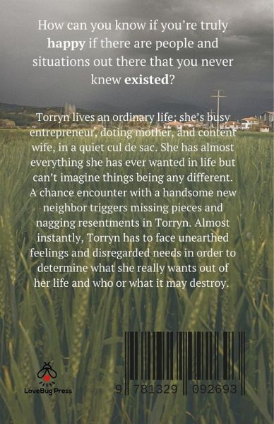 Torryn lives an ordinary life; she's busy entrepreneur, doting mother, and content wife, in a quiet cul de sac. She has almost everything she has ever wanted in life but can't imagine things being any different. A chance encounter with a handsome new neighbor triggers missing pieces and nagging resentments in Torryn. Almost instantly, Torryn has to face unearthed feelings and disregarded needs in order to determine what she really wants out of her life and who or what it may destroy.